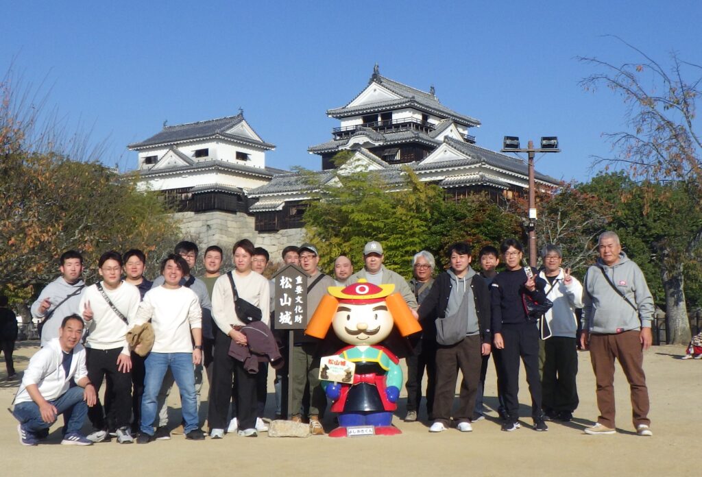 恒例の社内旅行、今年は15日~16日の一泊で道後温泉へ行ってきました。温泉街を楽しみ松山城の見学・散策をしたのち、しまなみ海道を通ってきました。天気が良すぎて11月にしては暑いぐらいでしたが、和気あいあいと楽しめました。