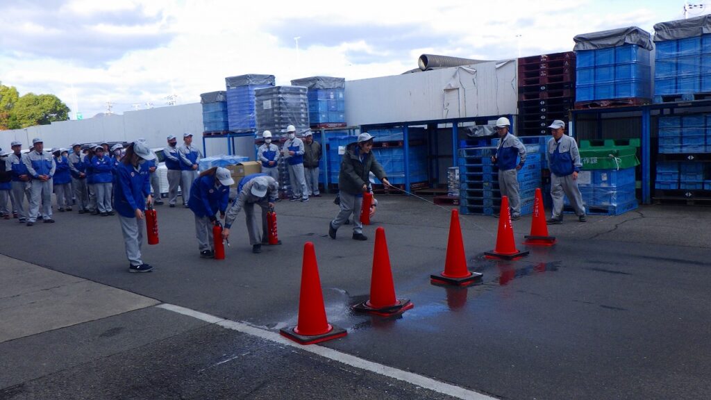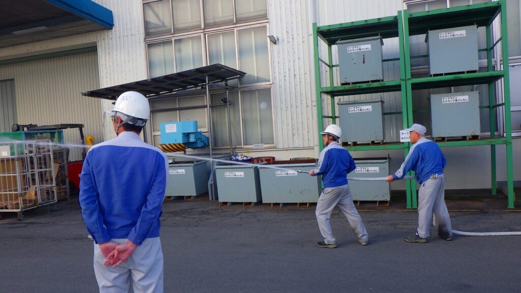 消防訓練として、避難・放水・消火訓練を実施しました。